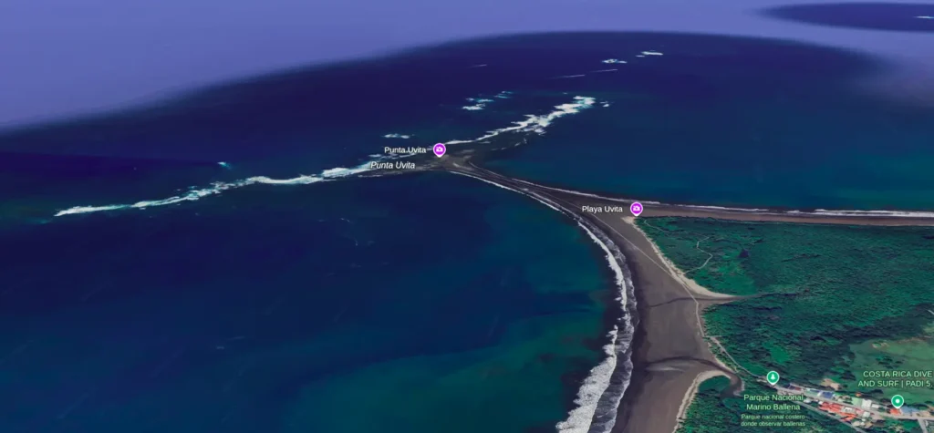 Marino Ballena National Park is Costa Rica’s first protected area created exclusively for marine conservation and the first marine park in Central America. Recognized by National Geographic as one of the top ten whale-watching destinations worldwide, it spans 5,160 hectares of marine area and 171 hectares of land, stretching along a 15-kilometer coastline from the Morete River estuary to Punta Piñuela.