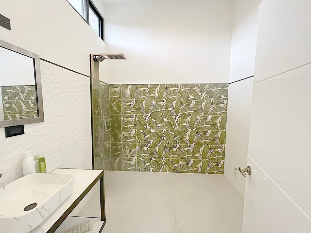 Bathrooms: 2 full bathrooms elegantly decorated with 3D tiles and tropical motifs.
