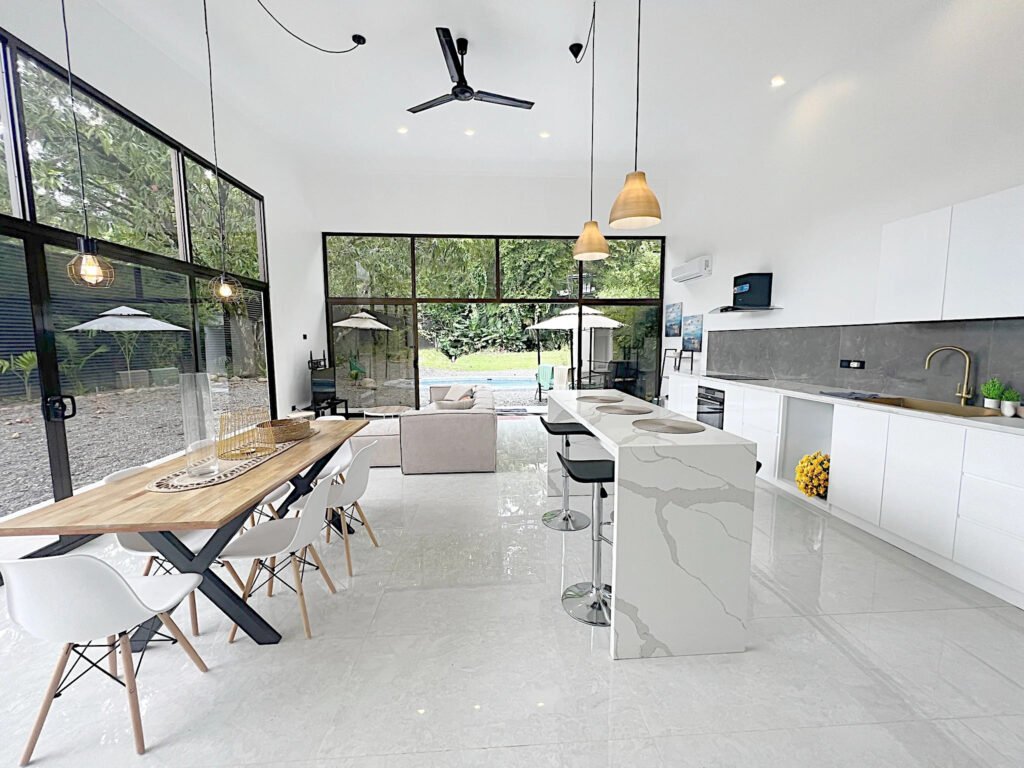 Architecture: Modern open-concept design with ceilings up to 4–5 meters high, creating an airy and luminous ambiance.